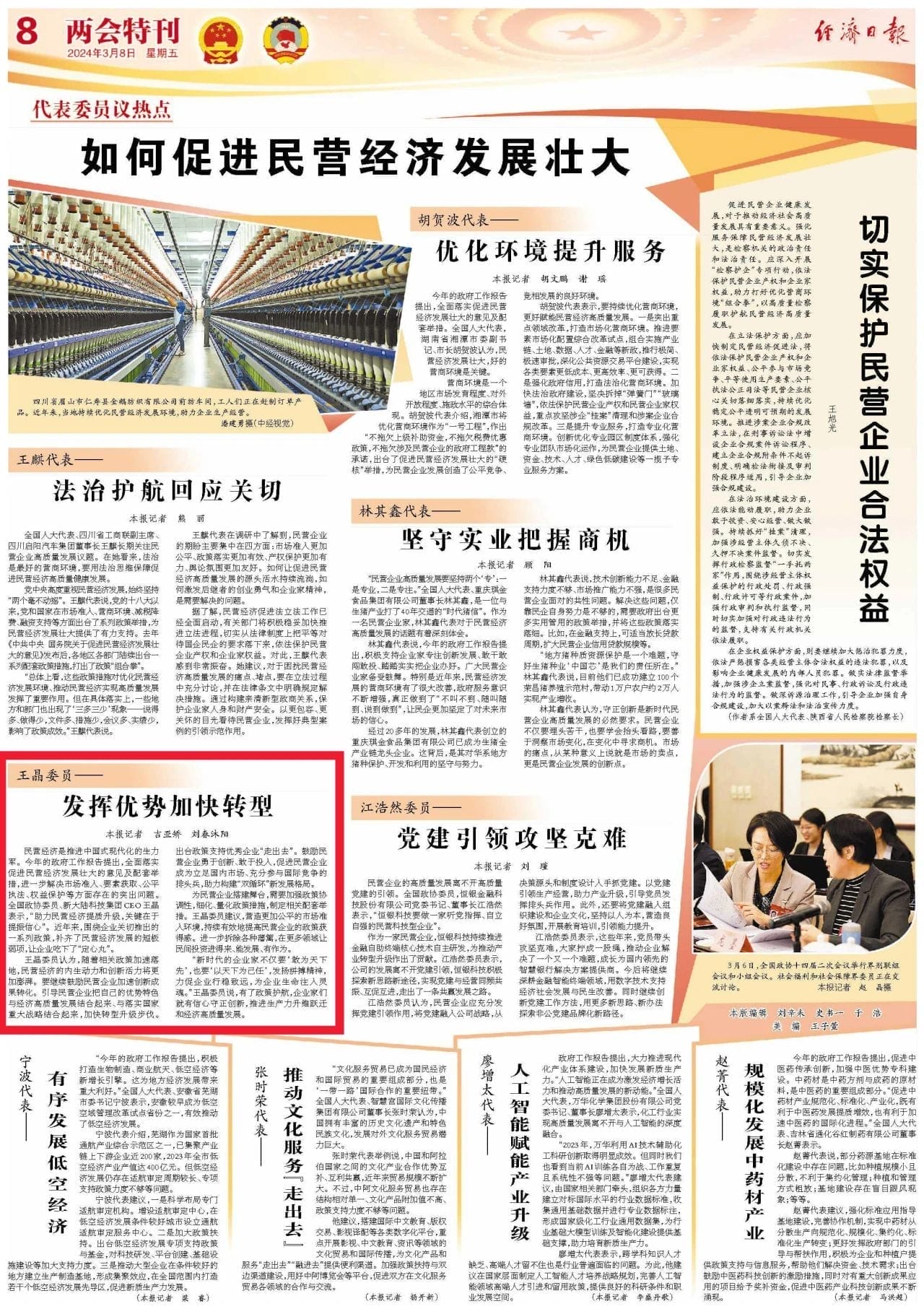 王晶委员:发挥优势加快转型,促进民营经济高质量发展