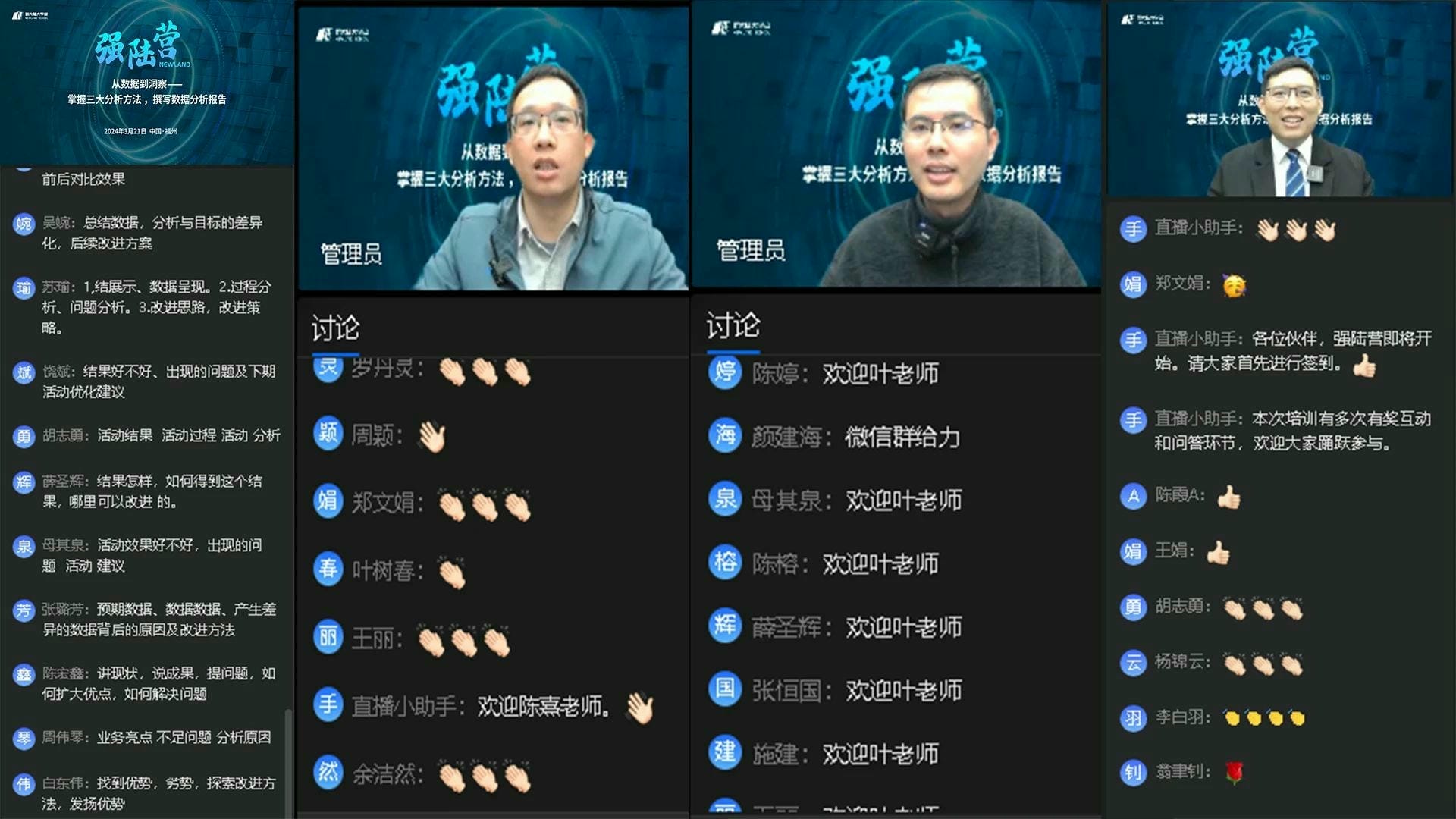 为了提升员工的数据分析能力,挖掘数据中的潜在价值,更深入地掌握数据分析技能,为业务决策提供更加精准的支持,实现数据驱动业务的目标。3月21日,集团人力资源部特别邀请www.乐鱼.com大学堂内部讲师叶欣杰、陈熹,通过线上直播学习和交流互动的形式,旨在通过实战教学,让学员们快速掌握三种数据统计分析工具,并学会撰写高质量的数据分析报告。此次培训吸引了集团总部及各经营单位的研发与产品人员共计344人参与报名。培训当天,互动热烈。