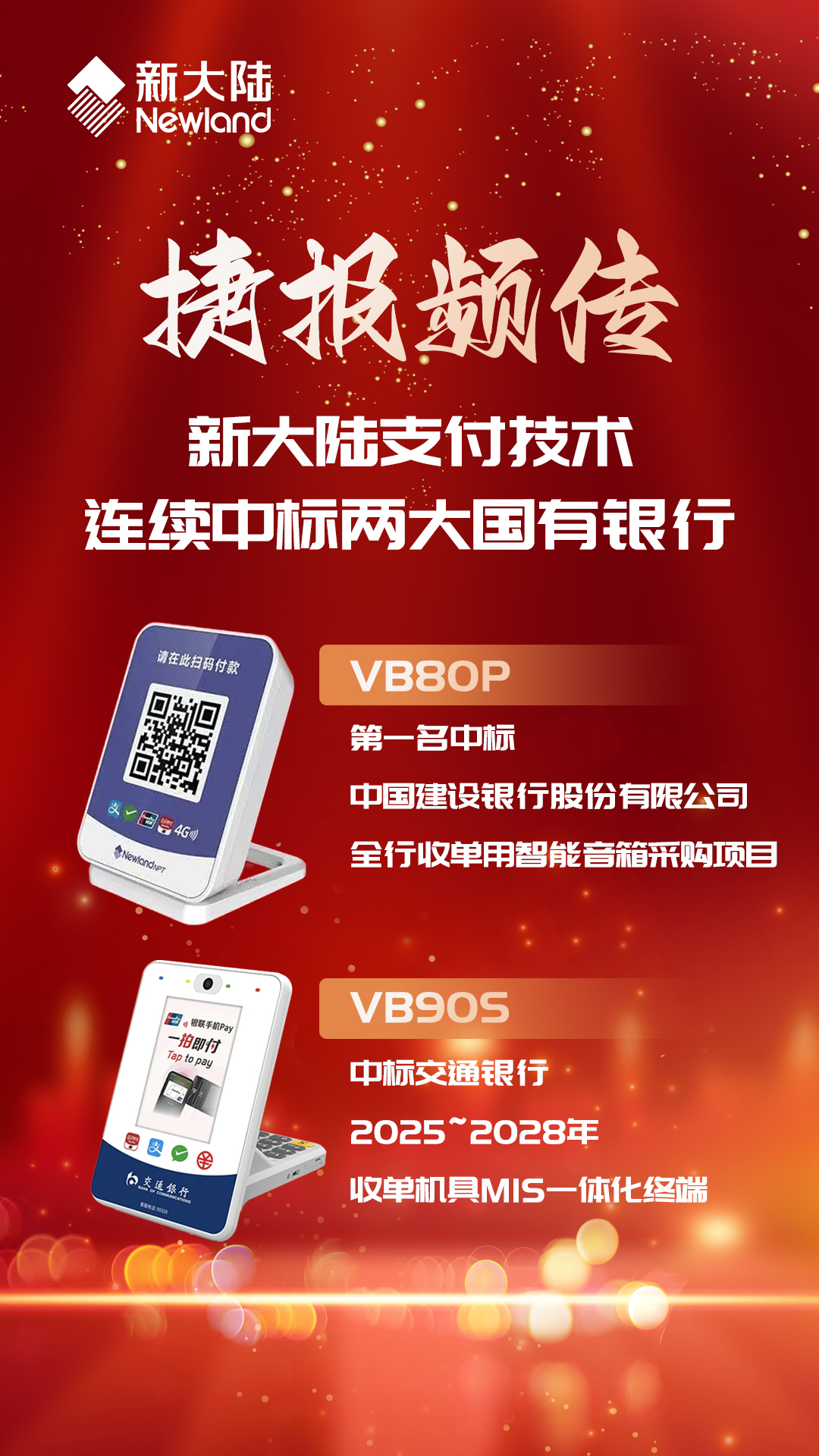 近日,www.乐鱼.com支付技术迎来开门红,捷报频传,喜讯连连。www.乐鱼.com支付技术凭借突出的产品实力和完善的服务能力,成功入围中国建设银行和交通银行两大国有银行采购项目。中标产品支付云音箱VB80P和非接扫码盒VB90S覆盖餐饮、零售、酒店等各类商业场景,满足不同体量商户的支付需求。